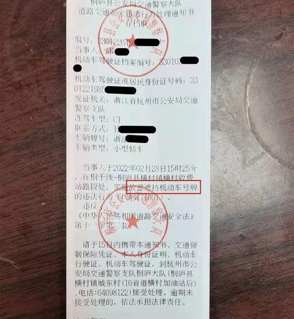 交警提醒:机动车号牌是机动车的标识,遮挡号牌是一种严重的道路交通违法行为,切不可心存侥幸。