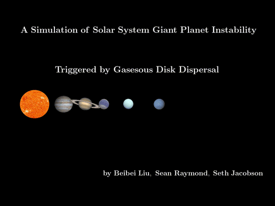 “我们的研究表明,该过程导致的动力学不稳定紧随着气体盘耗散,在太阳系诞生后约五百万到一千万年间发生。有别于Nice模型,我们的模型中巨行星轨道不稳定发生的时间更早。”刘倍贝说。