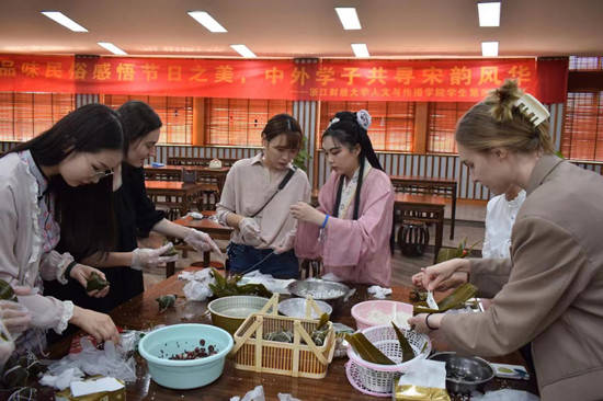浙财大国际学院的一名哈萨克斯坦留学生说:“这是我人生中第一次包粽子,虽然制作出来的粽子并不标准,但是整个制作过程都让我感到非常温暖,有许多同学来帮助我。”