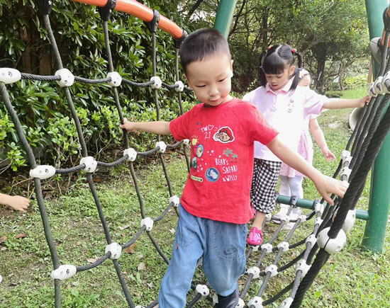虽然是暑托班、面对的孩子大多又不是自己的学生,但是,师资配备、课程设计却一点都不含糊。老师们还利用幼儿园内阴凉的地形与空间,为孩子们搭建了适宜运动的室外游戏活动场所。