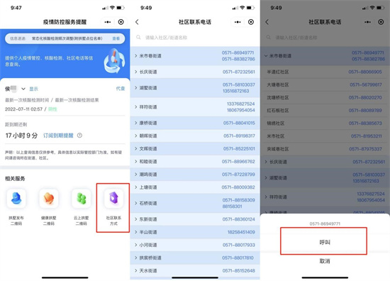 此外,市民也可以通过页面下方的“相关服务”点击二维码扫描关注“拱墅发布”“健康拱墅”和“云上拱墅”,第一时间获取拱墅区政策规定和疫情相关资讯;如需咨询信息或传递诉求,可通过“社区联系方式”模块联系社区、街道求助,拱墅区内各街道、社区公开联系电话均在表格内,点击号码即可直接呼叫,一键直达。