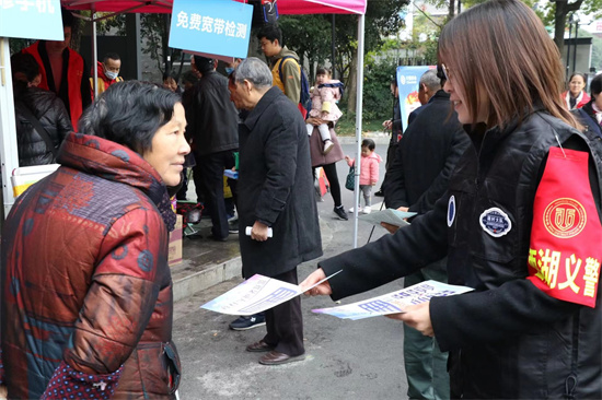 这支“义警”队伍的成员都是来自属地社区、物业和企事业单位的志愿者们,其中西溪小分队便是来自杭州移动西湖分公司西溪网格的员工。他们多次走进蒋村社区、西溪龙湖天街、西溪银泰、西溪天堂、西溪湿地等地,为民众进行反诈测试、案例宣讲等,两个月里,扫“反骗码”参与做题的市民达5900余人,派发宣传物料6200余份,为提高民众反诈意识发挥了积极作用。