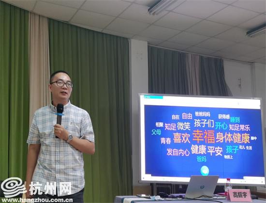 2022年9月23日下午,杭州市大成实验幼儿园的全体教师在大成音乐厅汇聚一堂,幼儿园党团工会特地邀请杭州师范大学高振宇教授为大家讲解有关于“幸福”的话题。