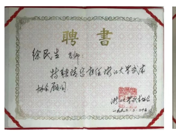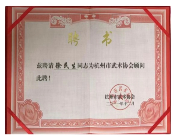 2018年,杭州市武术协会成立六十周年,评出“十大领军人物”、“十大贡献人物”、“十大老拳师”等,师父徐民生被评为“十大杰出武术老拳师”。