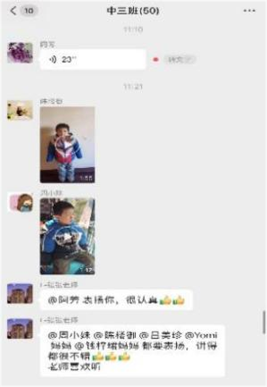 老师们在活动中及时对班级群内的分享进行逐一评价和反馈,与家长保持密切交流,从而支持、帮助孩子更好的成长。