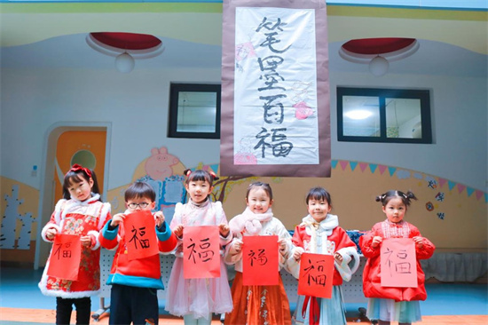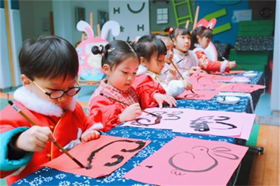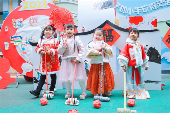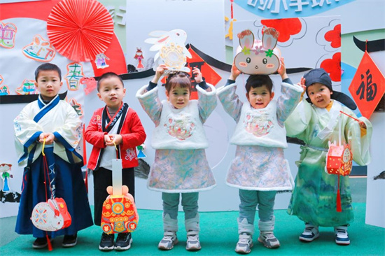 老师们把宋式美学搬进幼儿园里,为萌娃们开启了一场宋韵之旅。插花、宋词、剪窗花、写百福、猜灯谜、做兔灯等沉浸式体验活动,让萌娃们感受“风雅处处是平常”的宋文化。