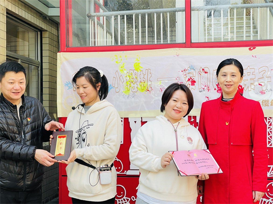 郑英奇副主任、高磊书记、黄静园长共同为小樱桃俱乐部3.0版进行剪彩,正式开启全新版小樱桃俱乐部3.0版,现场郑英奇与高磊为孙靖老师、单利节老师代表颁发专职教师聘书。