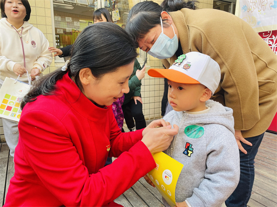 郑英奇副主任、高磊书记、黄静园长给小樱桃会员颁发入会证书、园徽。