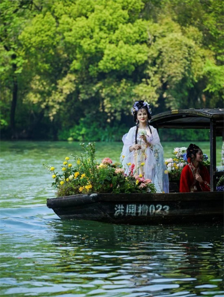 “百花生日是良辰,未到花朝一半春”,4月2日是农历二月十二,为传统花朝节。当天,一场“水陆空”立体式呈现的“宋韵芳华贺花朝”活动在西溪湿地举行,两百多名汉服爱好者盛装参与,更有宝珠、执素兮、天阳、喜悦等国风圈知名达人化身“花神”,乘坐氦气球沐风而上“天女散花”,乘坐鲜花装饰的摇橹船开启水上巡游……据了解, 2023杭州西溪花朝节时间为4月2日-5月3日,期间,西溪景色宜人,活动多多。