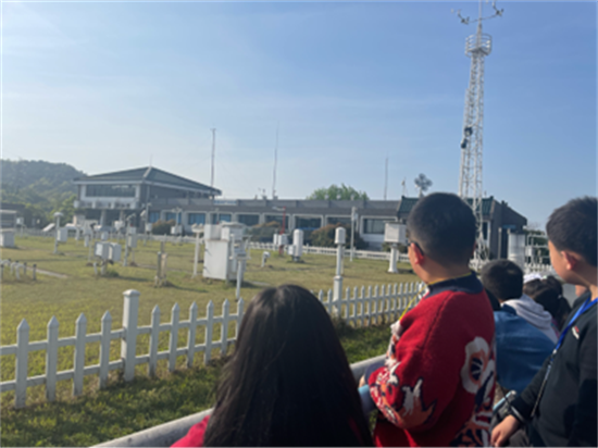 除了气象科普馆内场丰富的科普介绍,外场的气象监测仪器也引起了孩子们浓厚的兴趣。百叶箱、风塔、雨量器……各种只在课本上见过的仪器真实地呈现在眼前。百叶箱高1.5米,因为1.5米处的大气相对稳定;外表面白色,箱内的空气不会因箱壁升温而烤得很热,所测出来的气温和湿度就有较强的代表性;百叶用来通风和避雨……原来这些仪器所有的设计都内藏乾坤。在这里,孩子们强烈的求知欲迸发,他们化身成了“十万个为什么”,而老师变成了“百科全书”,一问一答,现场气氛活跃。