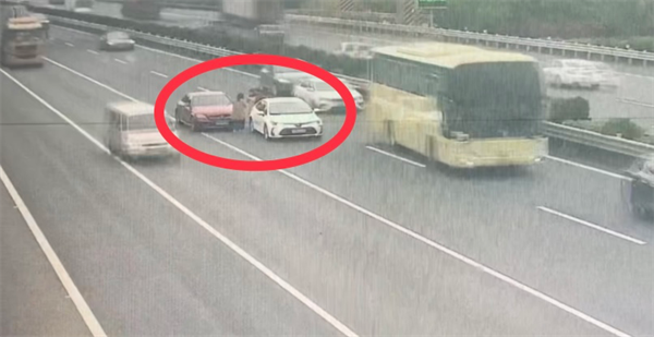 事故发生后,两车并没有直接撤离至安全区域而是下车争论,后方车辆纷纷刹停,直至一辆大巴车与他们“擦肩而过”,他们才意识到停留主线是多么危险。两分钟后,两车相继靠边。
