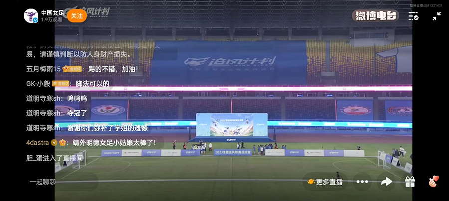 此外,作为“追风女孩”的偶像和榜样,中国女足也用实际行动支持这些乡村足球女孩的梦想。中国女足官方微博和视频号对决赛进行了直播,号召更多人来关注这些虽身处偏远地区、但一直勇敢坚持足球梦想的女孩。