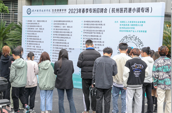 日前,杭州职业技术学院生态健康学院组织举办了一场精准对接杭州医药港企业人才需求的招聘会,杭州医药港小镇60余家制药类企业共提供500余个工作岗位,吸引了1000余名学生前来应聘。招聘会期间,企业共收到1428份简历,现场完成签约40余人,初步达成意向126人。现场的火热场面,让人们切切实实地感受到了企业对技能人才的巨大需求和职业教育的巨大吸引力。