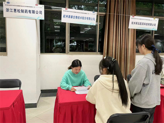 生物制药技术专业大三学生龚芝莹就与浙江杭康药业有限公司达成了初步就业意向。“之前学院组织去杭康药业参观过,我觉得公司员工都很勤奋,公司在企业文化和管理理念上也比较先进,更重要的是我可以有明确的职业发展规划。”龚芝莹看中的是公司对人才的培养理念“我可以从一线做起,扎根岗位才能真正了解和热爱岗位”。