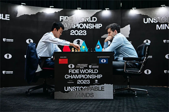 在争夺冠军的道路上,丁立人面对了非常大的困难。前14盘多次落后,但他总能在关键时刻扳平总比分,双方不得不通过快棋加赛,决出冠军归属。在率先进行的四盘25分钟快棋赛中,丁立人与涅波下得战斗激烈,难解难分,比赛直至最后一局才分出高下。
