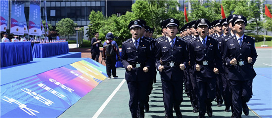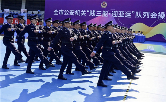 为积极备战亚运安保,进一步增强队伍凝聚力和战斗力,展示杭州公安“三能”标杆铁军形象,5月9日,杭州市公安局在市警校举行全市公安机关“践三能·迎亚运”队列会操决赛。