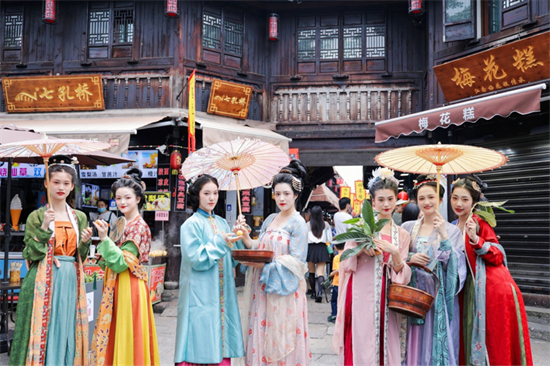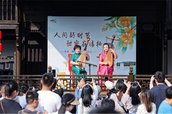 活动当天,八方游客纷至沓来,打卡古风表演,体验民俗文化、品尝特色美食,共享枇杷盛宴。现场甜蜜氛围浓厚,古戏台前古树被绚丽的灯带点亮,将水乡古镇的夜景映衬得美轮美奂;甜蜜转角与甜蜜门头将塘栖古镇的传统元素与现代时尚元素结合,成为吸引人流拍照打卡的特色亮点。漫步塘栖古镇内,移步换景,美不胜收。“栖”仙女穿着锦衣华裳,踏过青石板,走过广济桥。衣袂翻飞让人梦回汉唐,踏进了古人婉约的梦境之中,一回眸,一蹙眉,便惊艳了千年的时光。古戏台上、御碑码头边,古乐悠扬、水袖翻飞。舞蹈表演入情入景,仿若置身在一幅画卷当中;戏剧曲目婉转悠扬,道出了悠悠古韵。跌宕起伏的剧情,如梦似幻的舞台效果,让现场观众爆发出阵阵掌声。