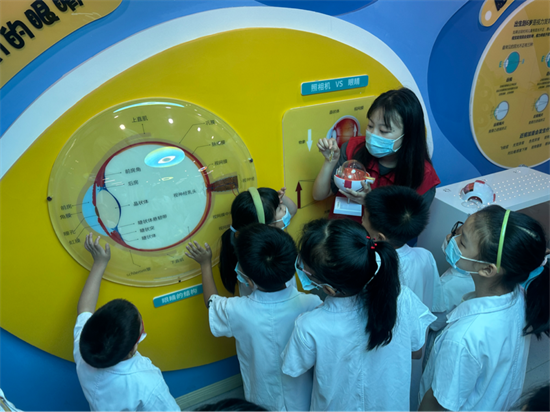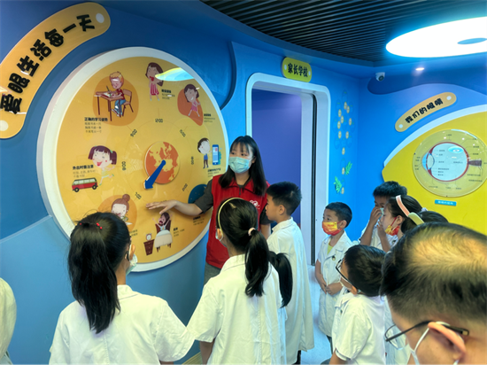 浙江省儿童青少年眼健康科普馆是目前杭州市唯一一个独创式全面系统的眼科科普基地,以“小眼睛大世界”为主题,旨在发挥全社会力量,形成全民爱眼氛围,重点培养广大儿童青少年眼健康保护意识。通过先进、特色、新颖、有趣的“体验式”科普,使儿童青少年“浸入式”了解眼健康有关知识,学习养成科学用眼习惯,自觉倡导并践行“一增一减”(减少用眼负担,增加户外活动)举措,进而更加全面、有效地提高儿童青少年近视防控的科普效果。开馆2年来,浙江省儿童青少年眼健康科普馆荣获市级第二课堂、杭州市儿童友好实践基地、杭州市第三批“红领巾e站1013”阵地、少年儿童爱眼护眼优秀服务队等称号。