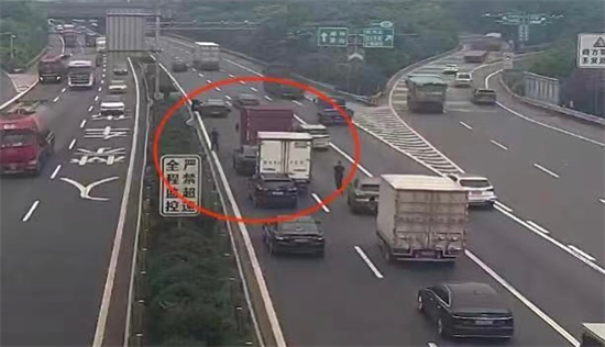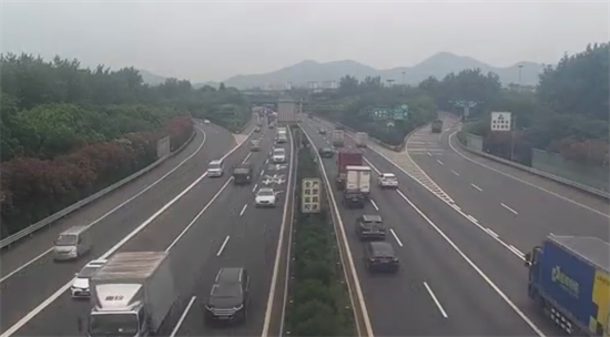 视频显示黑色小轿车在行驶至分流岛时突然刹车,紧跟其后的红色箱式货车来不及避让导致追尾黑色小轿车。指挥中心立即通过车牌号查询到了驾驶员的联系方式,电话引导事故车辆行驶至杭州北收费站等待民警处理事故。
