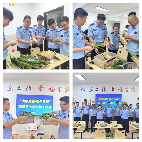 6月21日,为继承和发扬民族优秀传统文化,丰富警营文化生活,瑶琳派出所组织民辅警开展包粽子活动,大家围成一团裹粽叶、填糯米、系绳子,现场欢声笑语不断。