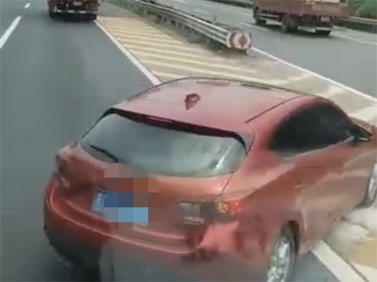 视频显示,当日11时06分许,一辆红色小车在一车道正常行驶,在杭州绕城高速北线的匝道口时忽然刹车停在第一车道,万幸的是,后方车辆发现及时紧急刹车并转向避让,以避免交通事故。随后红色的小车从分流岛驶入转杭州绕城高速北线的匝道。