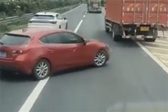 当前,正值夏季私家车自驾游的高峰时段,交通安全隐患也不同程度增多。7月4日上午11时左右,杭州公安高速交警支队六大队指挥中心接到过路司乘人员举报称,在杭州绕城高速东线往上海方向下沙枢纽附近,一辆苏D牌照的红色小车强行从第一车道压实线变道至第三车道。