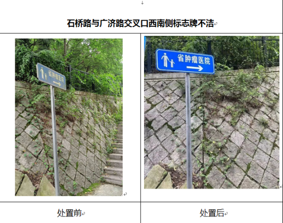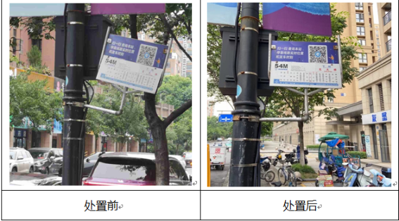 破旧污损的标识标牌进行全方位排查,发现问题后及时采集上报,数字城管平台派遣相关责任部门进行清理、更换。截至目前,共发现相关问题3071件,均已落实处置,处置后城市标识标牌更有序,城市道路更美观。