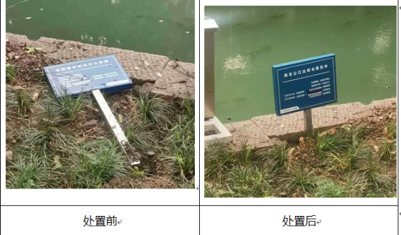 同样,一位市民朋友在长运路散步时,发现河边设立的雨水排放口公示牌倒伏,热心市民立即将此情况拍照上传至有奖举报平台,问题得到有效处置。