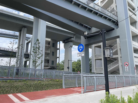 江东大桥新建过江慢行系统道路桥梁标准段宽度3.3米,东岸桥梁总长约848米,道路长度约114米,西岸桥梁总长489米,道路长度约90米,且坡率较小,便于非机动车出行。