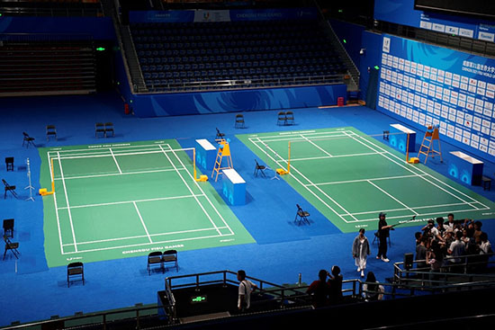 和常见的场馆不同,羽毛球馆顶层分布着一条条灰色布袋风筒,看似不起眼,实则是空调出风口。“布袋风筒上分布有多排小孔,可以让空气分布均匀一致,也能起到降温作用。”于健介绍,布袋风筒启用时,馆内温度将保持恒温状态,送风风速不超过0.2米/秒的标准,这不仅降低了空调运行成本,也为运动员提供了稳定、舒适的场地。此外,馆内照明系统均达到了高规格的防眩光标准。