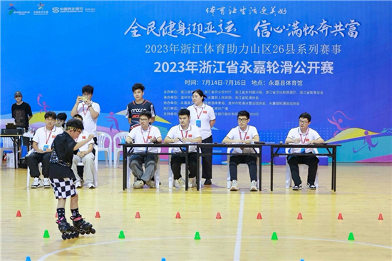 7月15至16日,作为2023年浙江体育助力山区26县系列赛事之一的浙江省永嘉轮滑公开赛,在永嘉县体育馆举行,共有省内各地市42支代表队、近400名运动员参加。