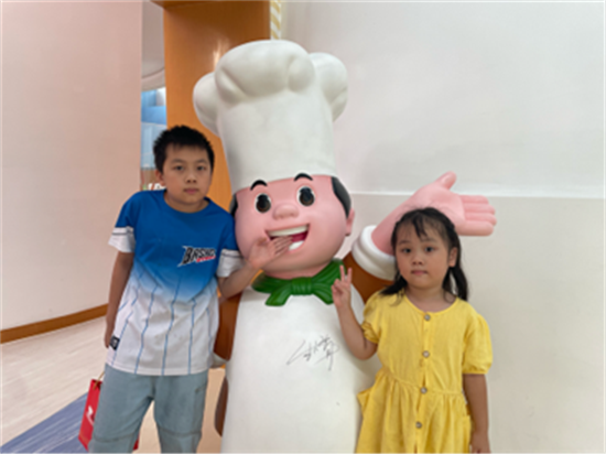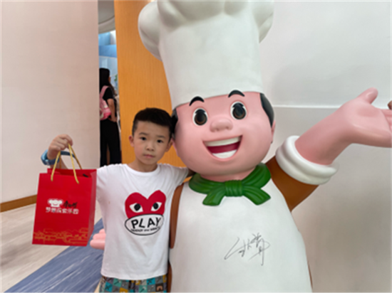 大厅中一碗巨大的康师傅红烧牛肉面模型引人注目,叉子叉起的面条犹如一条条琴弦,拨动还能发出美妙的音乐,面碗中蔬菜模型、牛肉模型、鸡蛋模型……配料丰富。一旁的中华美食地图,标示着中国各个地方的特色方便面,有东北特色的小鸡炖蘑菇面、四川特色的麻辣牛肉面,杭州特色的雪菜肉丝面,云南特色的泡椒牛肉面……讲解员一一介绍。另一侧墙上屏幕里的数字不断跳动引起了孩子们的注意,这是康师傅杭州工厂建厂以来所生产的方便总数,目前已达到370.5亿份。