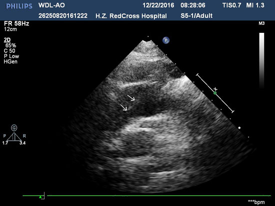 随后,超声医学科王大力副主任医师检查到病人的腹部大动脉位置上时,凭借多年的临床经验,立马发现了张先生的病情“不一般”!超声波显示,腹主动脉内一根条带在来回飘动,他的腹主动脉“分层了”!危险!王大力医生立马对张先生的心脏进行了检查,发现主动脉弓内也存在这样的条带,这是人体内最危险的疾病之一“主动脉夹层”!
