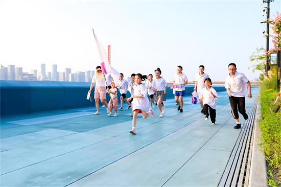 8月12日下午,钱塘江畔,“大莲花”旁,由杭州亚运会15家官方供应商联合举办的“同心迎亚运 跨界一起嗨”主题活动激情上演。伴随一声号令,跑友们迈开脚步奋力向前奔跑,从芳草如茵的沿江公园,到人气火爆的滨江银泰,大家以奔跑的姿态描绘出了一幅动感热图,留下了“全民迎亚运”的美好印记。