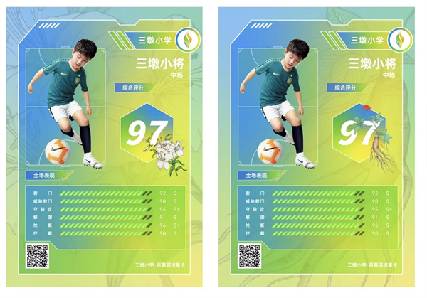 本次测试为入门级,面向全市在读在籍幼儿园、中小学足球爱好者(男女不限),有兴趣的杭州足球小将们,都可以通过微信小程序“校园足球综合管理平台”进行报名。青少年球员将参加考级和挑战赛,还能获得校园足球的首批等级卡和纪念卡。纪念卡为三墩小学中草药特色,将孩子们的中草药画作用作本次纪念卡的底板。