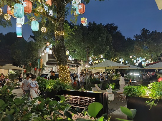 夜间餐饮消费券发放的第一个周末,就有不少“吃货”闻风而至。在凉风习习的初秋,夜幕里的蒋村集市慢生活街区亮起街灯,街区汇集了众多有颜有品、格调满满的餐饮商家,可漫步、可夜跑、可泡吧、可享美食……伴随着街唱歌手的慢弹浅唱,向往的生活就在眼前。