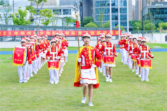 “鼓号队是少先队组织的象征,我们每隔两年会组织线下的鼓号队展演活动,现场会对每支队伍进行星级评定,主要考核队伍的演奏水平以及鼓号队的配合度,让孩子们在鼓号队中培养吃苦耐劳、团结协作的精神。”杭州市少先队学校总辅导员赵燕表示,此次考级展示活动表达了少先队员迎接亚运盛会的热情,展现了少先队组织的文化魅力,进一步推动少先队鼓乐队在学校的普及和发展,增强少先队员的光荣感和归属感。
