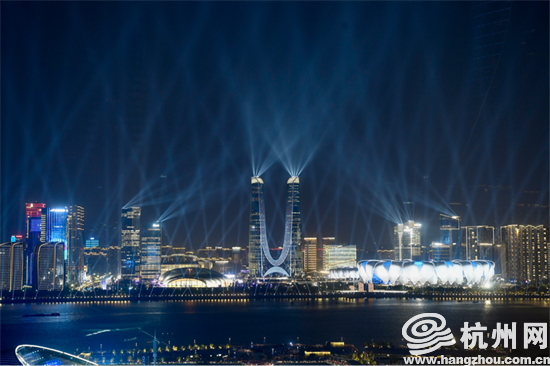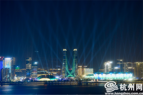 亚运氛围瞬间拉满!杭州奥体场馆上演酷炫灯光秀(组图)