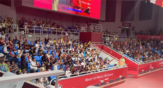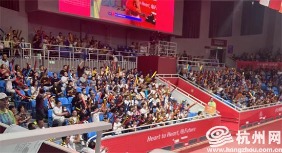 比赛现场,观众看到中国选手获胜也非常激动,这场充满力量的对决,让大家情不自禁地欢呼起来。