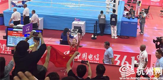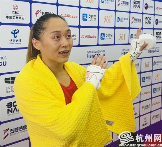 在女子54公斤级比赛中,中国拳击选手常园成功战胜了泰国选手朱达玛集蓬,并获得亚运会拳击项目的首场胜利。比赛结束后,记者在混采区遇到了常园。尽管她满身大汗,但眼中透露着喜悦之情。常园表示她会积极进行训练,为接下来的比赛做好充分的准备。