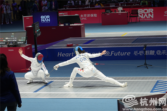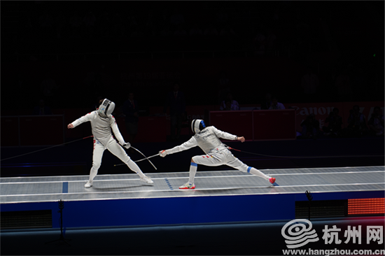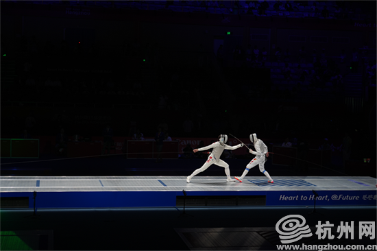9月24日,杭州亚运会击剑比赛男子个人花剑和女子个人重剑两个项目在杭州电子科技大学体育馆进行。