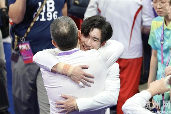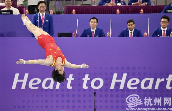 9月26日下午,杭州亚运会体操男子个人全能决赛在黄龙体育中心体育馆开赛。张博恒夺得个人全能冠军,日本选手北園丈琉获得亚军,兰星宇获得季军。