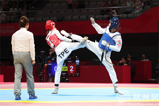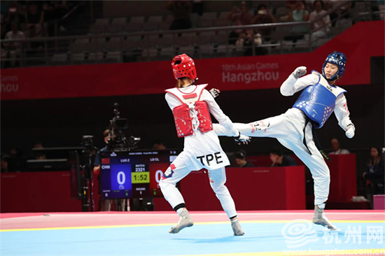 9月26日,杭州亚运会跆拳道女子57公斤级决赛在临安举行,中国选手骆宗诗击败中国台北选手,强势夺金。