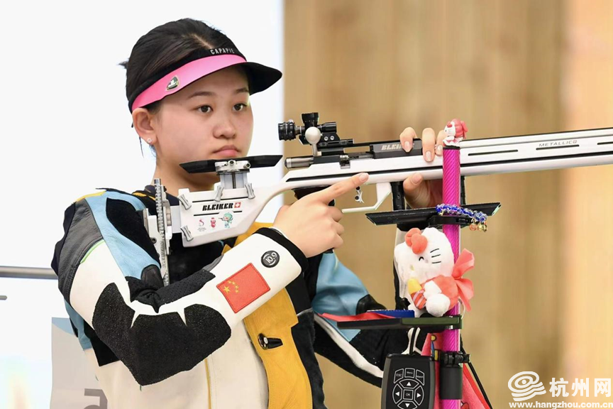 9月27日,在富阳银湖体育中心举行的杭州亚运会射击女子50米步枪3种姿势团体赛决赛中,中国射击队派出韩佳予、夏思钰和张琼月出战,三位姑娘以总分1773分的成绩取得金牌,这是中国代表团在杭州亚运会上获得的第57枚金牌。印度队以1764分、韩国队以1756分获银牌、铜牌。
