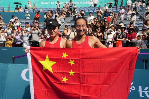 郑钦文目前世界排名第23位,身为现役的中国网坛“一姐”,她在决赛中表现得更加积极主动,以6∶2轻松拿下首盘后,虽然在第二盘遭遇了一点困难,但还是以6∶4取胜,顺利取得了女单冠军。赛后,惺惺相惜的两人,共同高举国旗绕场庆祝,这是中国女网连续5届亚运会获得单打冠军,是属于中国网球、中国体育的荣耀。