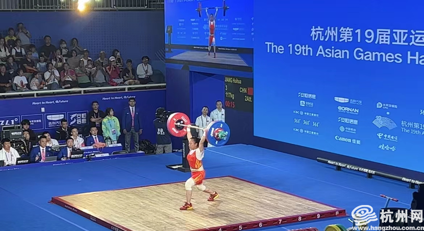 9月30日,杭州亚运会举重项目开赛,26岁中国选手蒋惠花出战举重女子49公斤级A组决赛。
