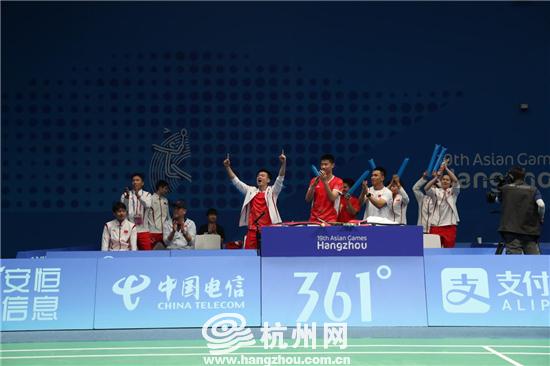 10月1日,杭州亚运会羽毛球男子团体决赛在滨江体育馆进行。国羽男团迎战印度队。