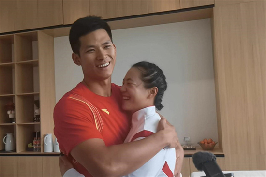 比赛结束两人一见面,王丛康就给妻子来了一个热情的拥抱,又秀起了恩爱。“他昨天先拿了金牌,今天我要向他看齐。”李冬崟笑着说,“他拿两块金牌,我也拿两块,有一点较劲。”
