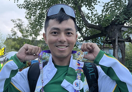 中国澳门场地自行车运动员郭满华说:“以后我会带着杭州亚运的徽章前往世界各地,把杭州亚运的故事告诉全世界。”