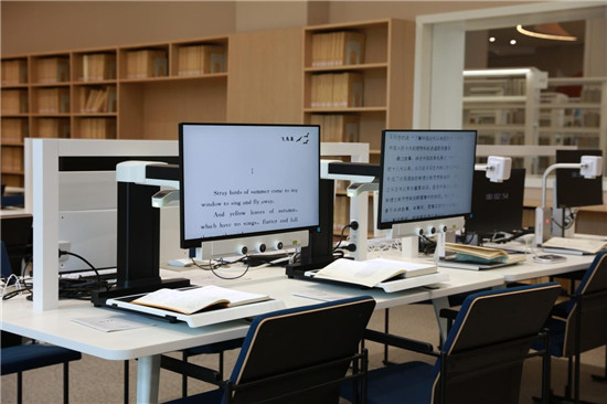 参观结束后,视障读者们回到了无障碍阅览区,使用电子助视器、视障读者专用电脑、盲用点显器等新设备查阅了相关资料,借阅了盲文点字书、智能听书机。他们还使用盲文刻印机现场制作了文献资料。